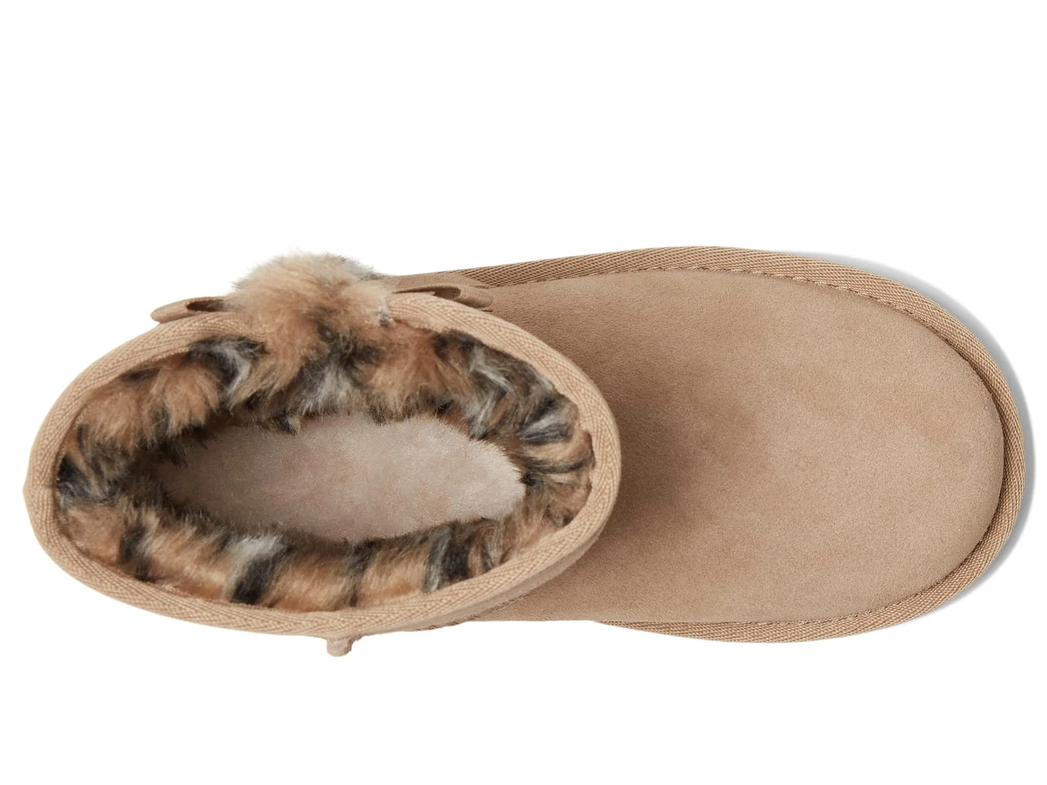 - Soft suede upper accented with dainty bows and a row of plushy, exposed sheepskin.